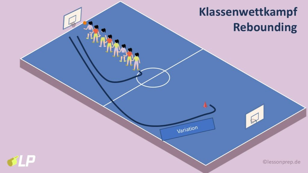 • Alle Schüler stellen sich hintereinander vor dem Korb auf.