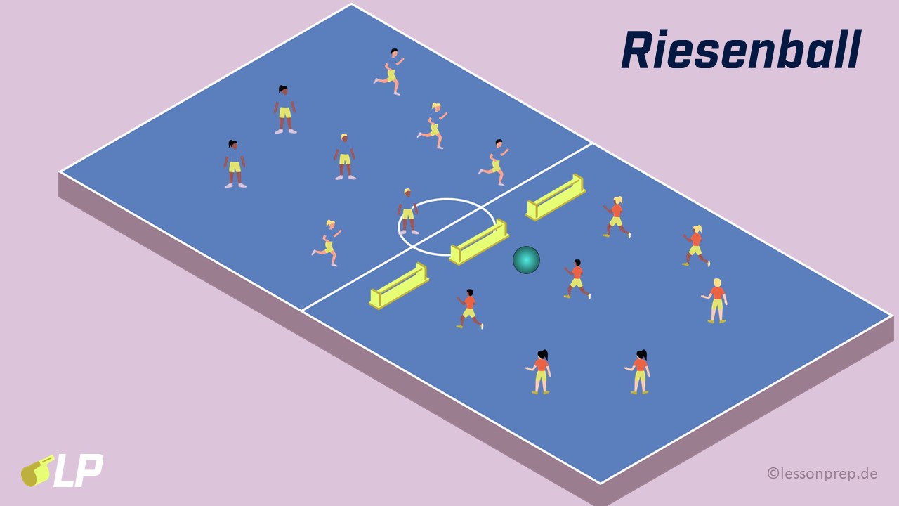 - Das Spielfeld ist durch umgedrehte Bänke in zwei gleichgroße Hälften eingeteilt.