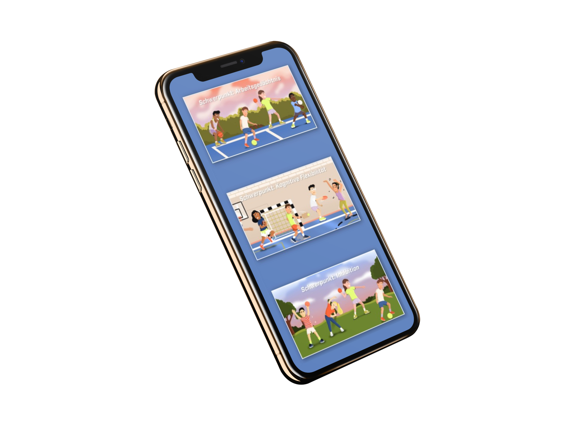 Durch gezielte Spiel- und Übungsformen können neben der Bewegung an sich auch geistige Prozesse, die das Verhalten, die Aufmerksamkeit und die Gefühle steuern, gefördert werden. Diese geistigen Prozesse werden in der Neurowissenschaft als exekutive Funktionen bezeichnet. Erfahre mehr im kurzen Informationsvideo.