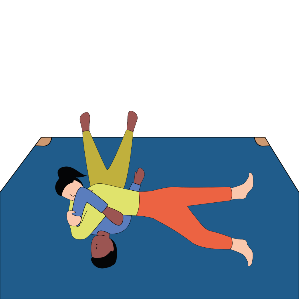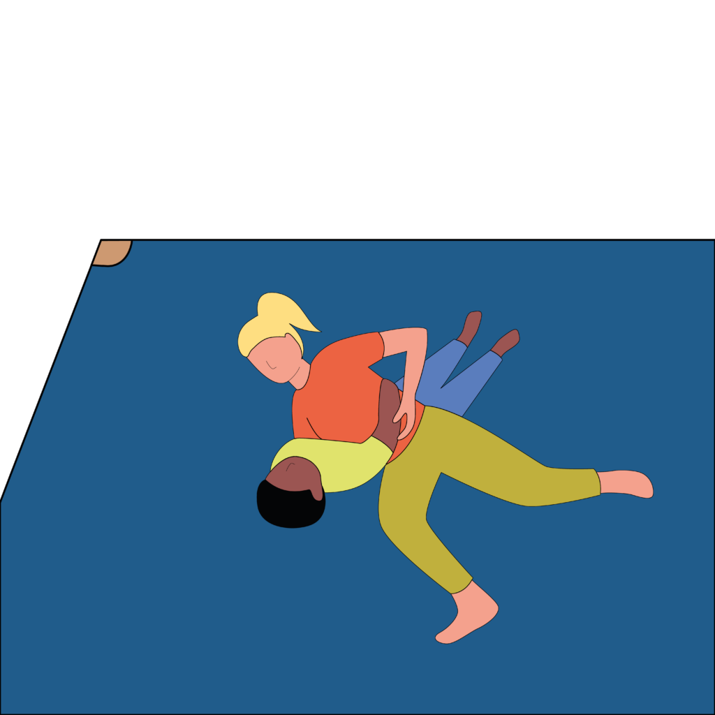 • Hoe kunnen we nu verder? Wat moet de persoon die op zijn rug ligt, kunnen doen om het gevecht niet te verliezen?