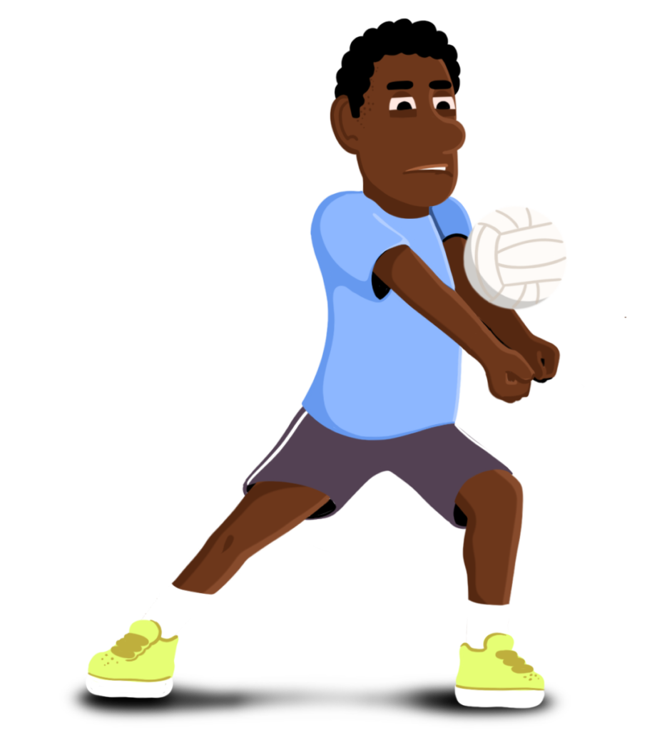 - Vang de bal voor je voorhoofd → dan door De armen strekken wegspelen