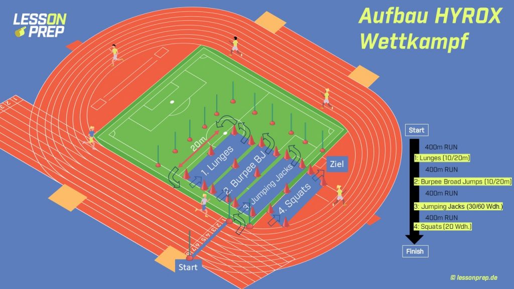 Das Konzept ist angelehnt an die Fitnesswettkämpfe von HYROX:
