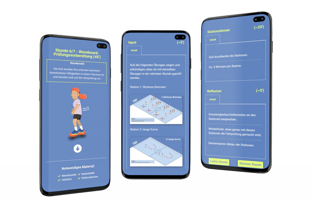 Die Waveboard-Unterrichtsreihe umfasst insgesamt sieben Unterrichtseinheiten.
