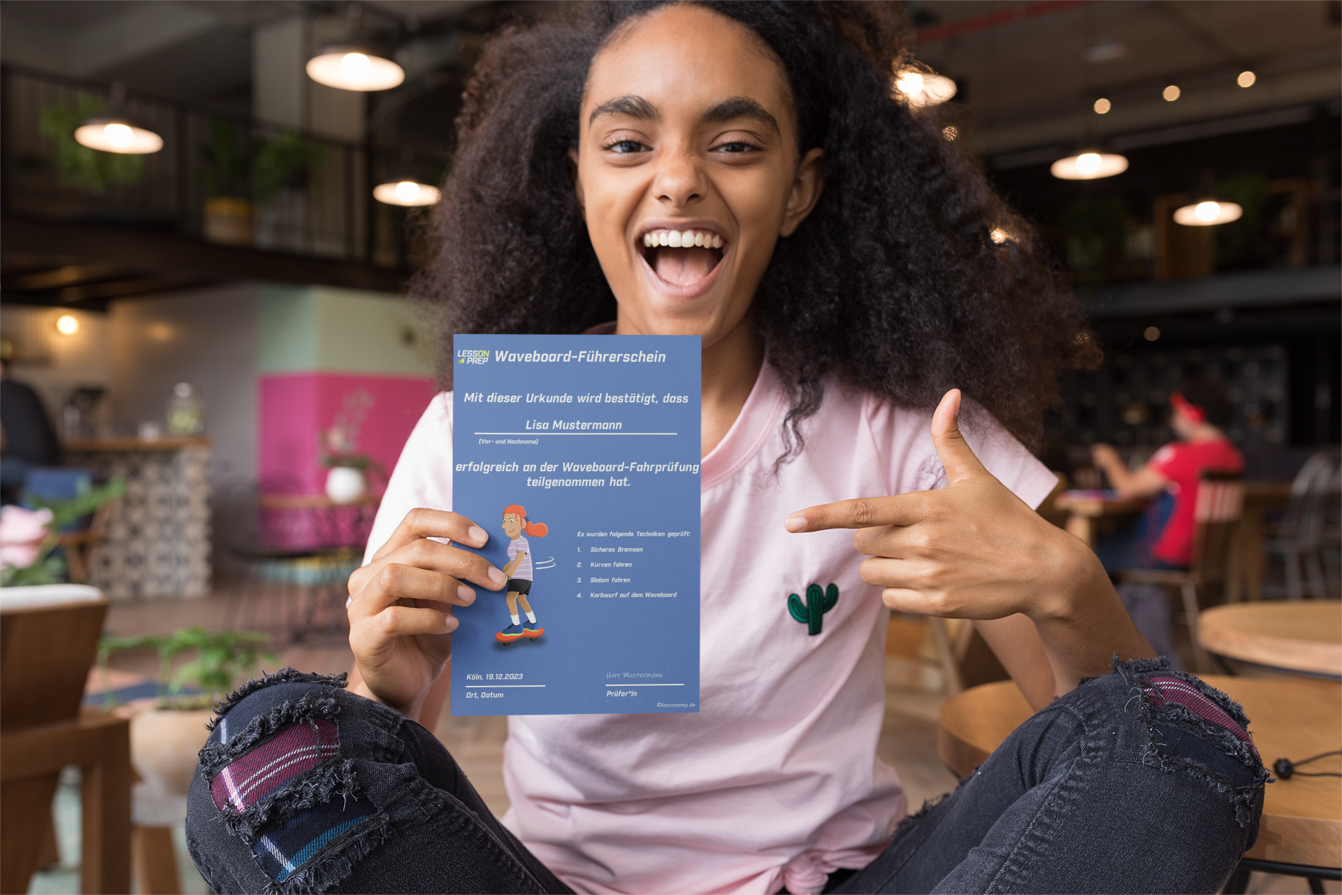 Die Unterrichtsreihe bereitet die Lernenden auf die abschließende Waveboard-Fahrprüfung vor. Geprüft wird in den Kategorien: “Sicheres Bremsen”, “Kurven fahren”, “Slalom fahren” und “Korbwurf mit dem Waveboard”.